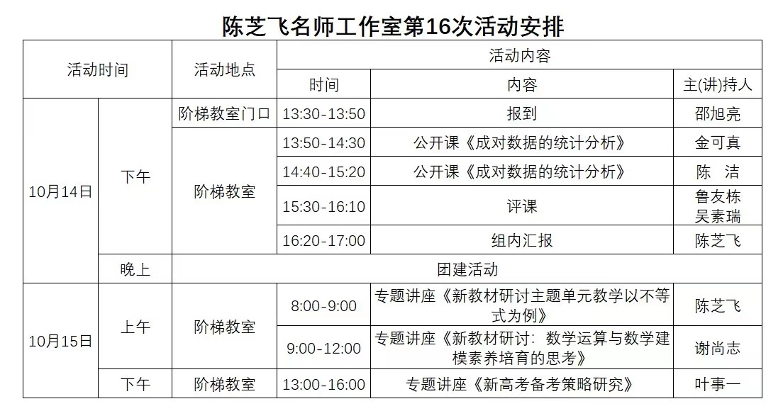关于举行 陈芝飞名师工作室第16次活动的通知
