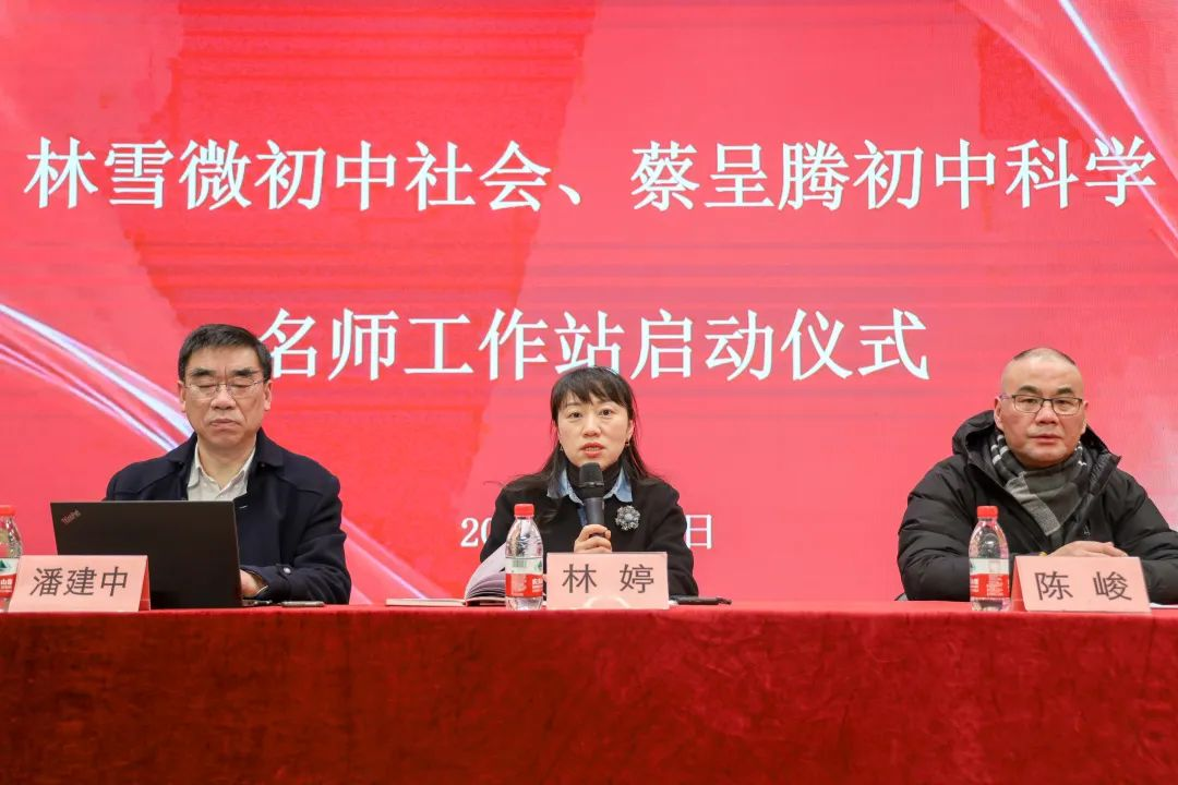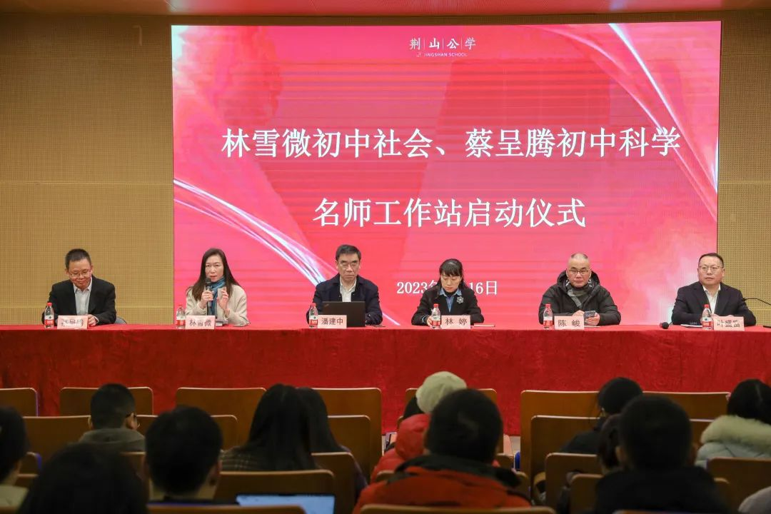 胜日寻芳泗水滨,无边光景一时新。伴随着春日的暖阳,温州市林雪微初中社会、蔡呈腾初中科学名师工作站启动仪式于2月16日在美丽的荆山公学举行。温州市教育教学研究院院长潘建中、副院长林婷,乐清市名师办主任陈峻,省特级教师林雪微、蔡呈腾,荆山公学校长叶盛富出席启动仪式,仪式由林雪微老师主持。
