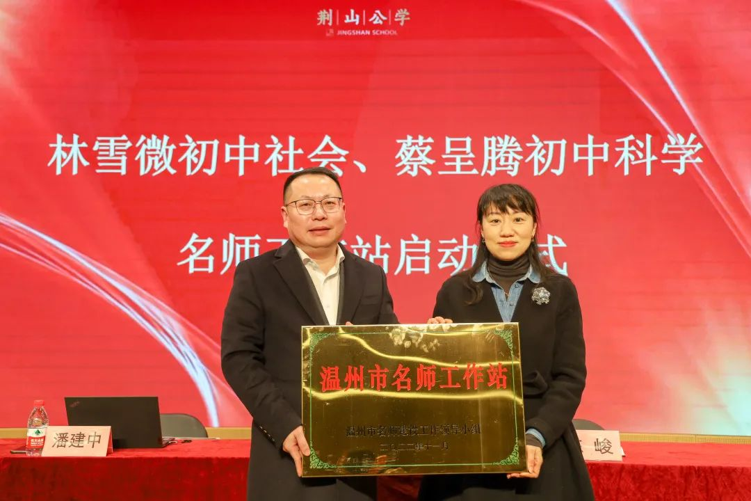 第三项议程由温州市教育教学研究院副院长林婷为荆山公学温州市名师工作站的设立进行授牌。