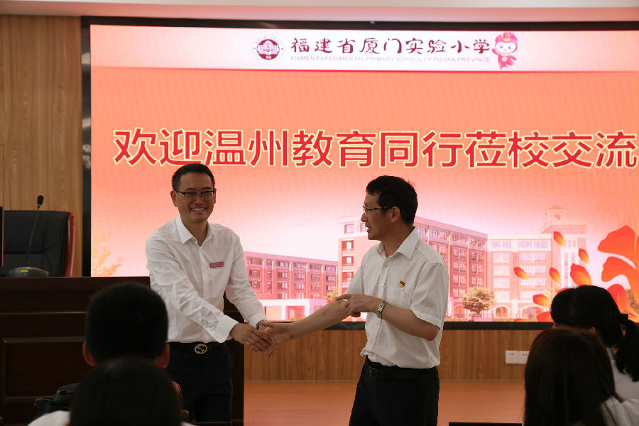 为了进一步促进地域教育品牌交流,打开办学视阈,汲取选进地区先进办学经验,提升校长治理和专业对接能力,温州市潘照团“名师送教”工作室第6次活动于2023年5月12-13日走进厦门名校。与福建名校名师交流学习,受到厦门市集美区教育局副局长王乐凉等领导的热情接待。期间,参访了福建省厦门市实验小学、厦门实验小学集美分校(灌口小学)、集美区窗内小学、坑内小学,听取学校特色项目报告及办学经验分享。