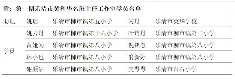 4.第一期乐清市黄利华名班主任工作室全体学员;