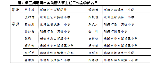 关于举行第三期温州市黄笑蕾名班主任工作室26次集训瓯海区黄笑蕾名班主任红色先锋工作室第31次