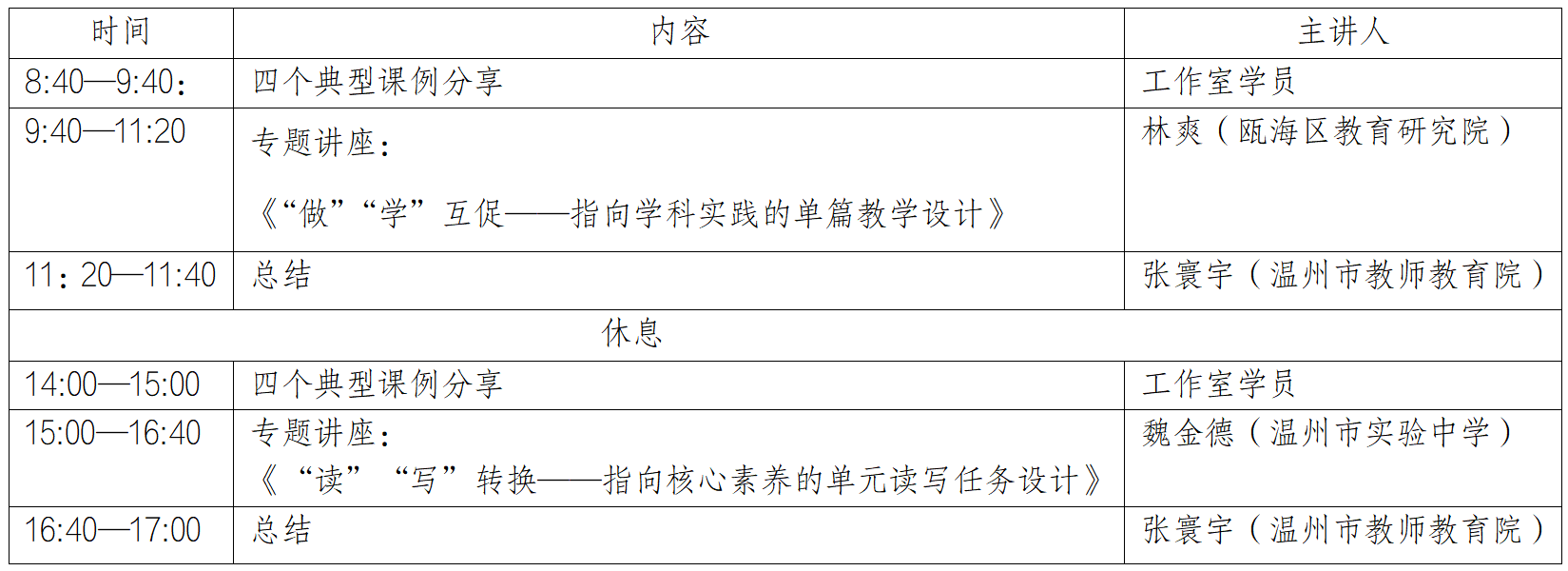 温州市    张寰宇“名师送教” 工作室于     2025年12月06日 08:40:00时到2025年12月06日 17:00:00时