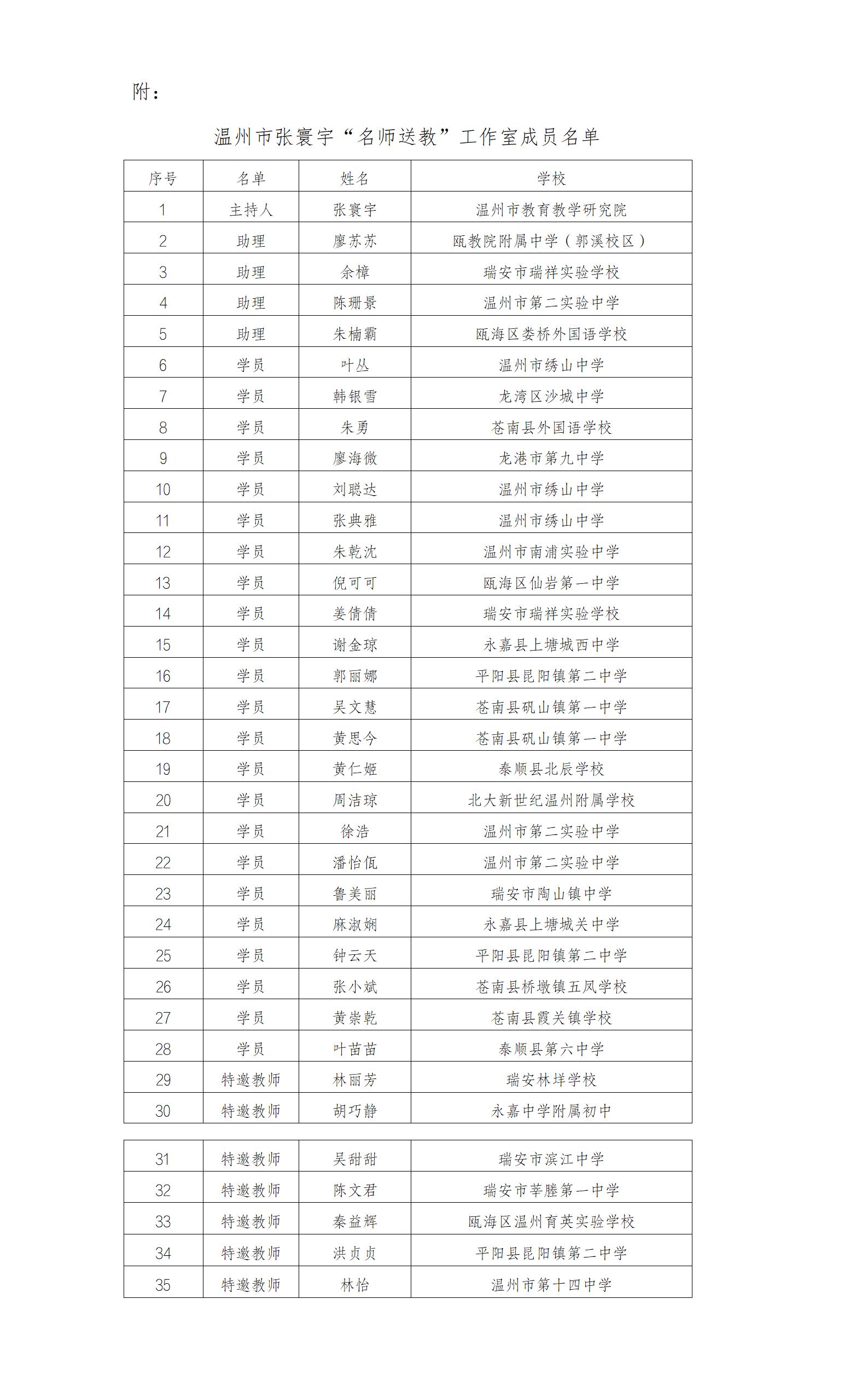 温州市张寰宇“名师送教”工作室全体成员、特邀教师