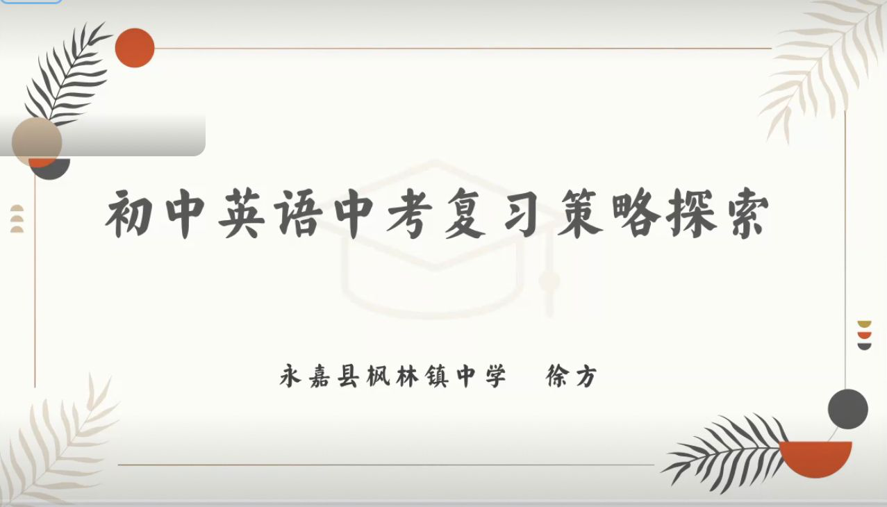 6月9日,永嘉县枫林中学徐方老师带来讲座《初中英语中考复习策略探索》,为老师们传授在中考冲刺时间里,可以从基于语篇、深入语篇、超越语篇角度,带领学生分析英语阅读简答题;从写作的导向、托底等角度把关学生作文;从落实基础、分层训练出发,落实复习计划。