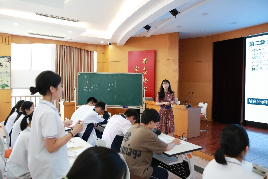 我校的陈婉如老师开设《人口专题学考复习》,以温州一家人的案例创设情境,以“学生的学”为主导开展小组讨论、自主整理思维导图,陈老师在教学过程中不断引导学生解题,给予方法的指导。