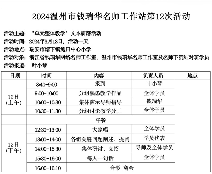 关于举行温州市钱瑞华名师工作室第12次活动的通知